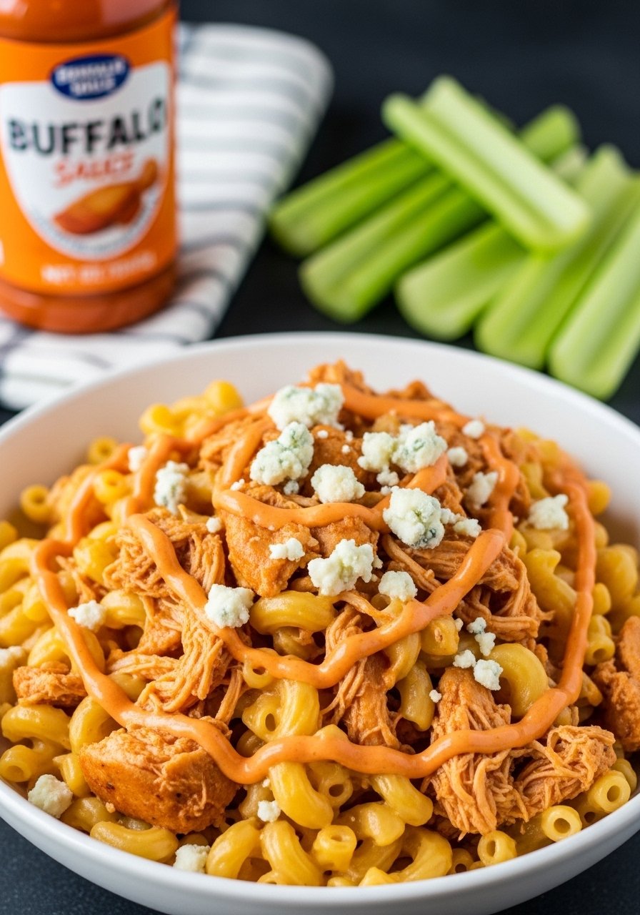 Top with chopped celery and a drizzle of ranch or extra buffalo sauce. Pairs well with carrot sticks or a crisp slaw. Store in airtight containers. Reheat in microwave until just steaming.