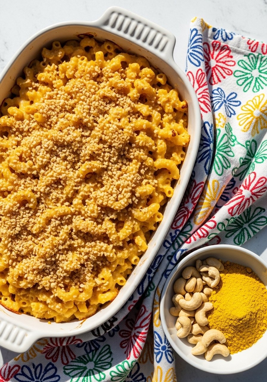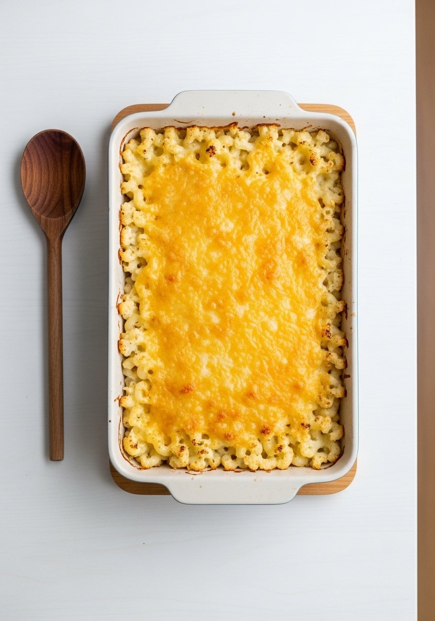 This is the cozy base that started it all — creamy cheddar sauce with a crisp breadcrumb top. It's rich, tangy from a touch of mustard, and gets wonderfully sticky at the edges. Perfect for meal prep because it reheats evenly and slices cleanly. Use a heavy-duty baking sheet under the dish to catch any drips.