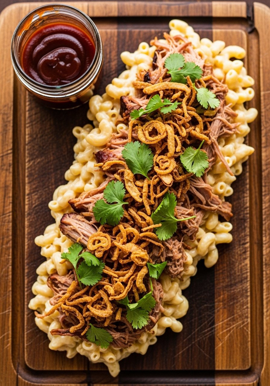 18. BBQ Jackfruit Vegan Baked "Mac" and Cheese