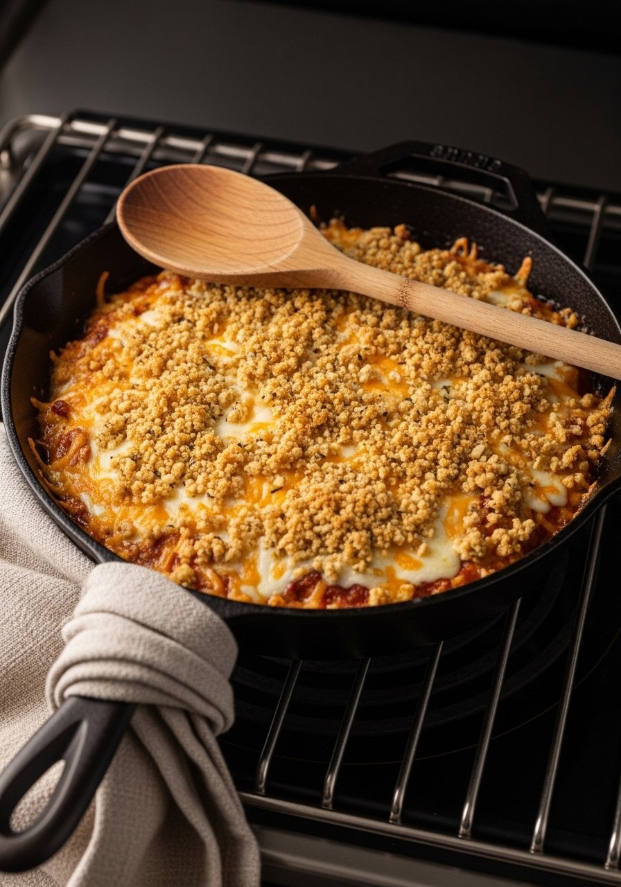 8. Bake 20-25 minutes until bubbling and golden. For a crispier top, broil 1-2 minutes watching closely.