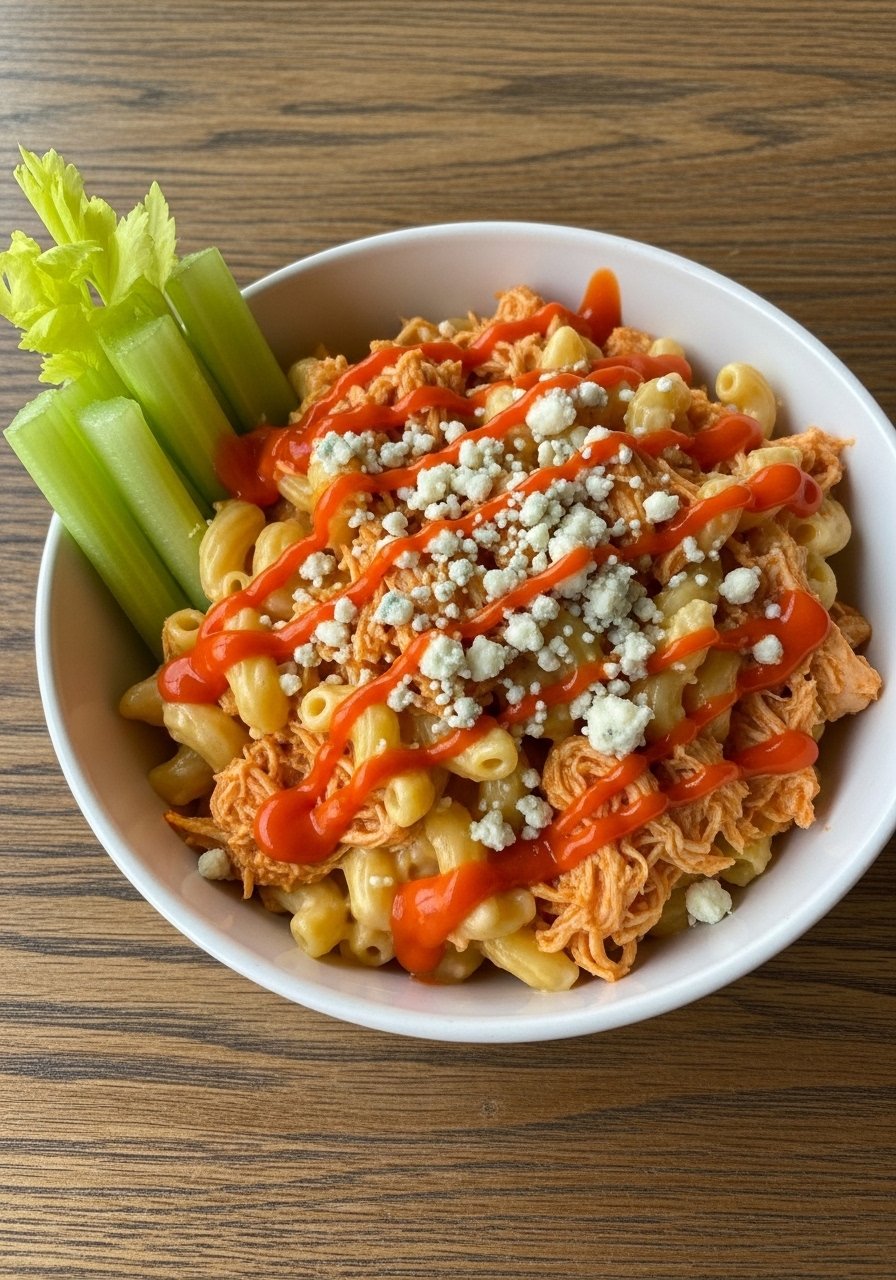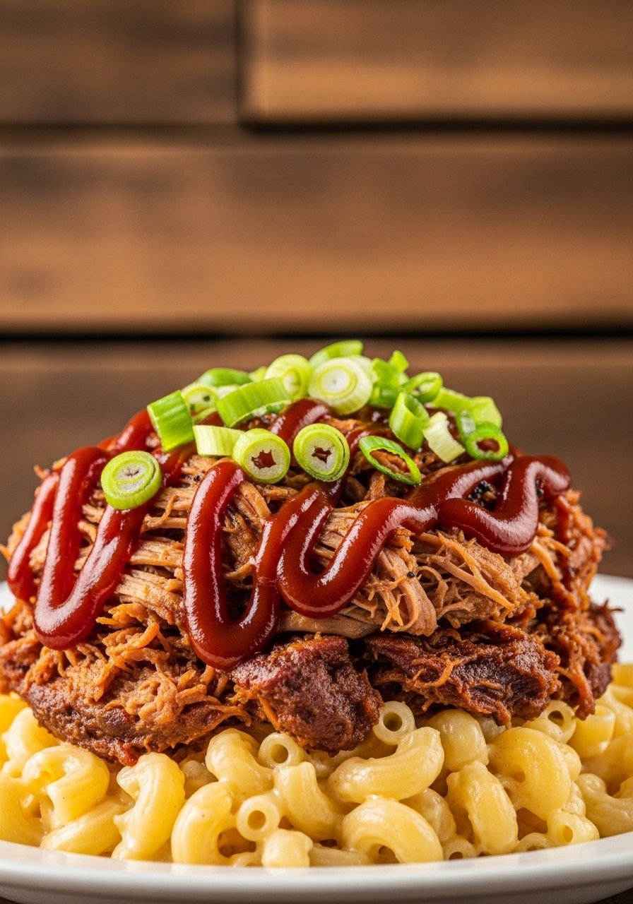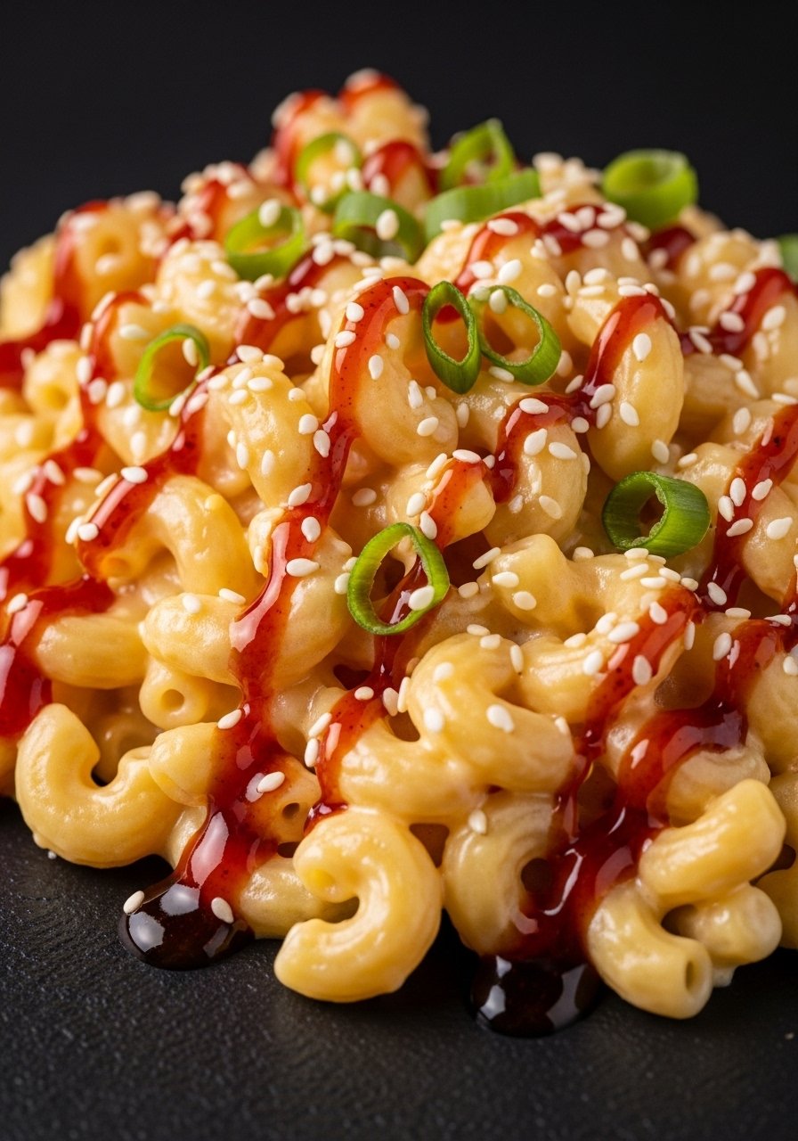 A sweet-heat glaze of sriracha and honey wakes up this mac and cheese—balanced, slightly sticky, and addictive. It's a creative crowd-pleaser for adventurous palates.