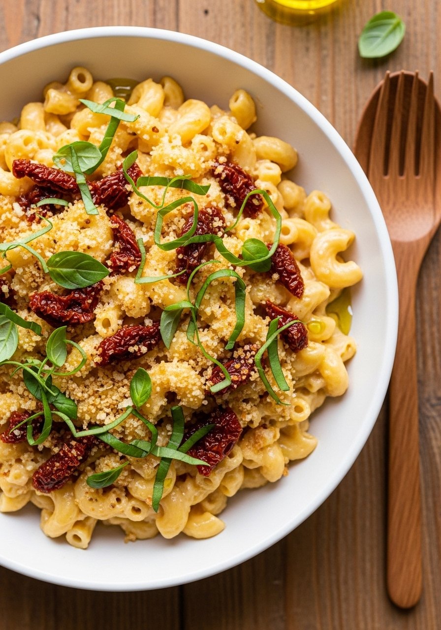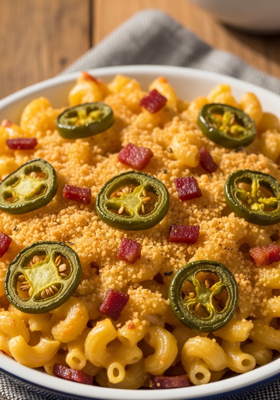Smoky bacon folded into cheesy pasta, topped with crisp bacon crumbs—this is comfort with a savory crunch. The bacon adds salt and texture, balancing the creamy sauce. Best for weekday indulgence or game-day spreads.