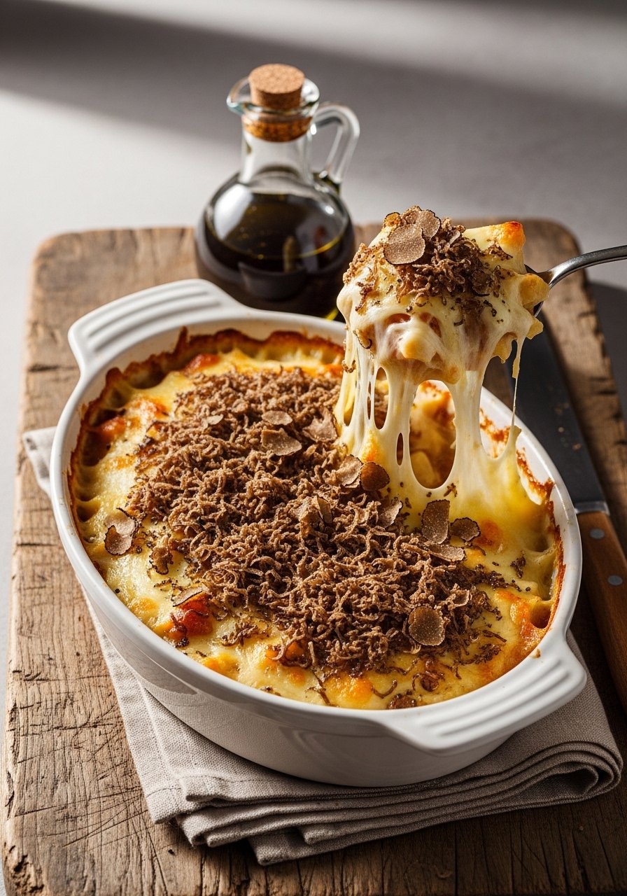 A grown-up twist that smells like celebration—earthy truffle, nutty Gruyère, and a silky béchamel. It’s rich but balanced and perfect for smaller gatherings or when you want to impress. Use a tiny drizzle of truffle oil at the end for aroma. I grate the cheese with a microplane zester for even melting.