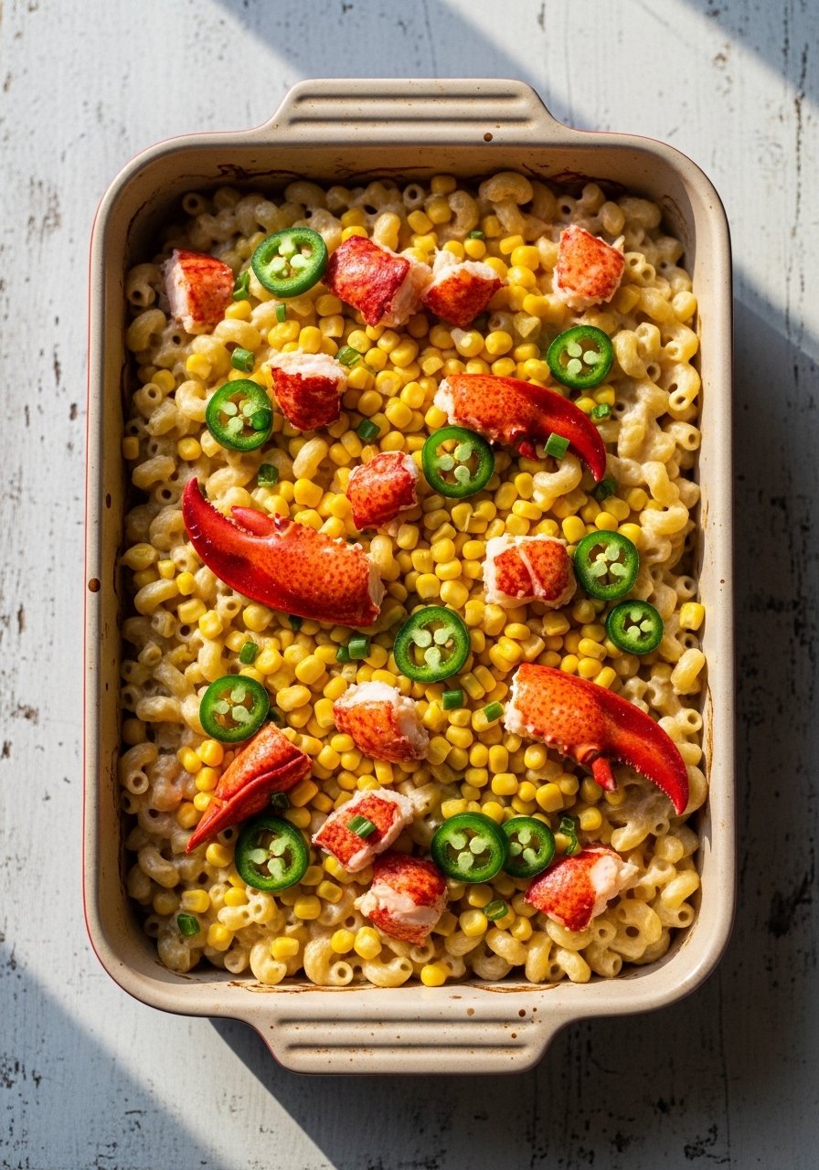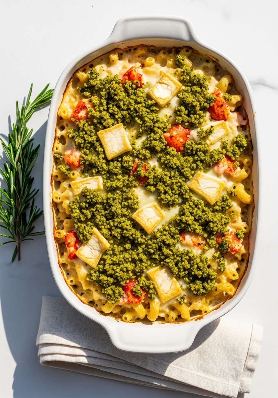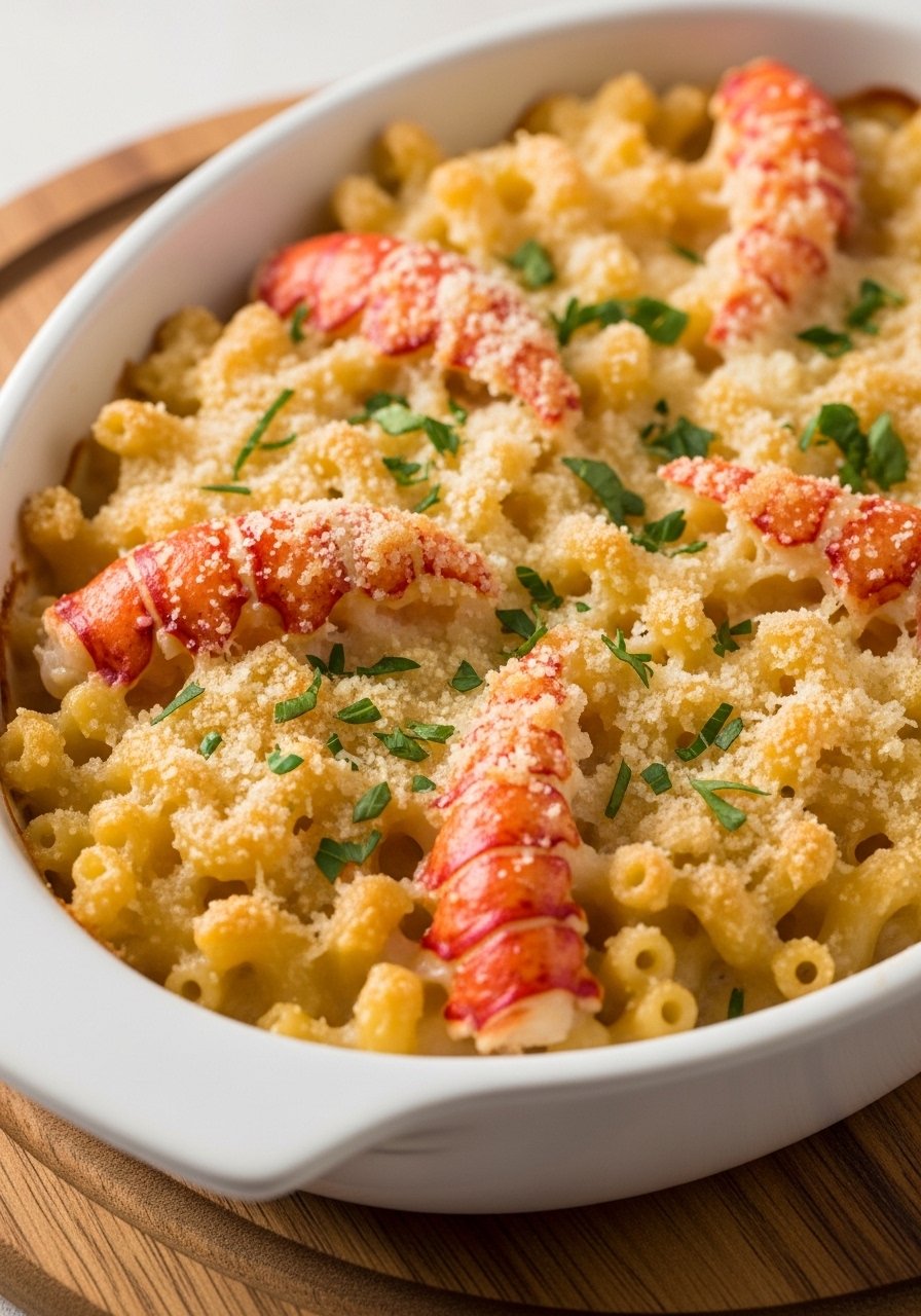 5. Fold in pasta and lobster; top with panko and bake 18–22 minutes.