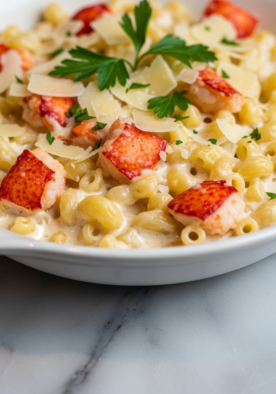 This version leans into Alfredo-style creaminess—rich, silky, and cheese-forward with chunks of lobster mixed throughout. Simple, indulgent, and crowd-pleasing.