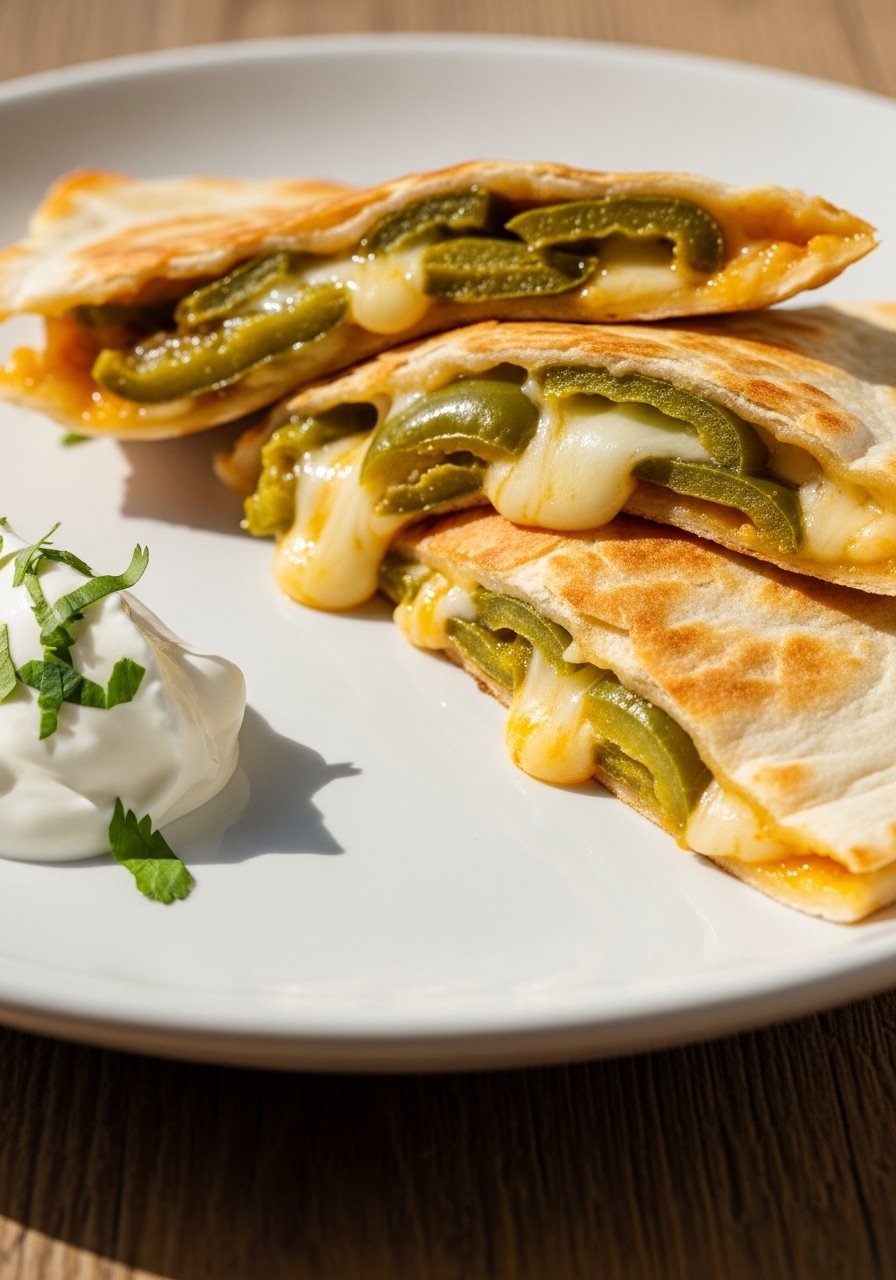 This spicy, tangy chicken quesadilla recipe features roasted green chiles and pepper jack for a lively kick. It’s smoky, creamy, and bright with lime. I like to roast poblanos under the broiler and peel them—use a paring knife for clean prep.