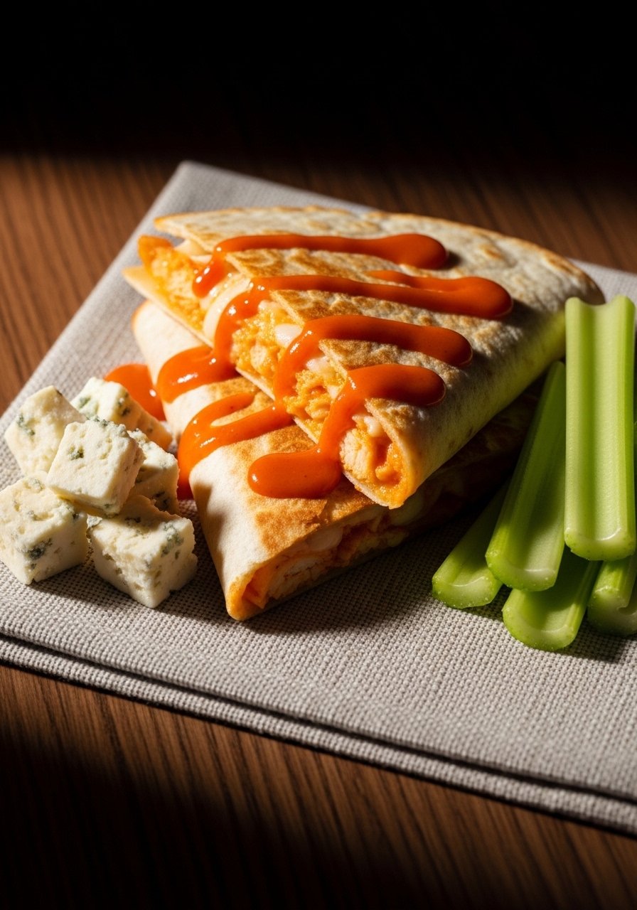 4. Buffalo Chicken Quesadilla with Blue Cheese Drizzle