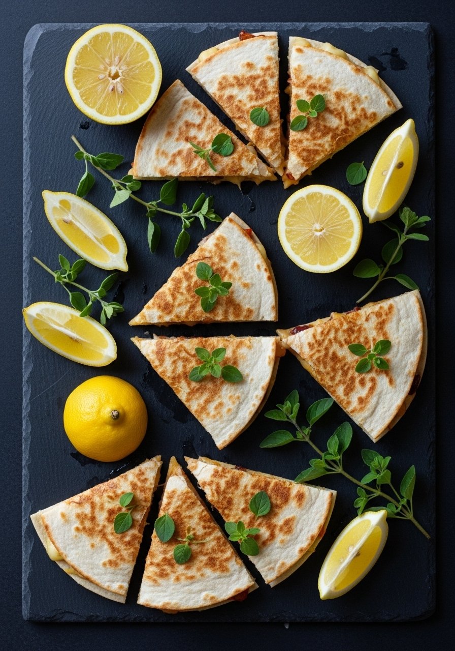14. Mediterranean Lemon-Oregano Chicken Quesadilla