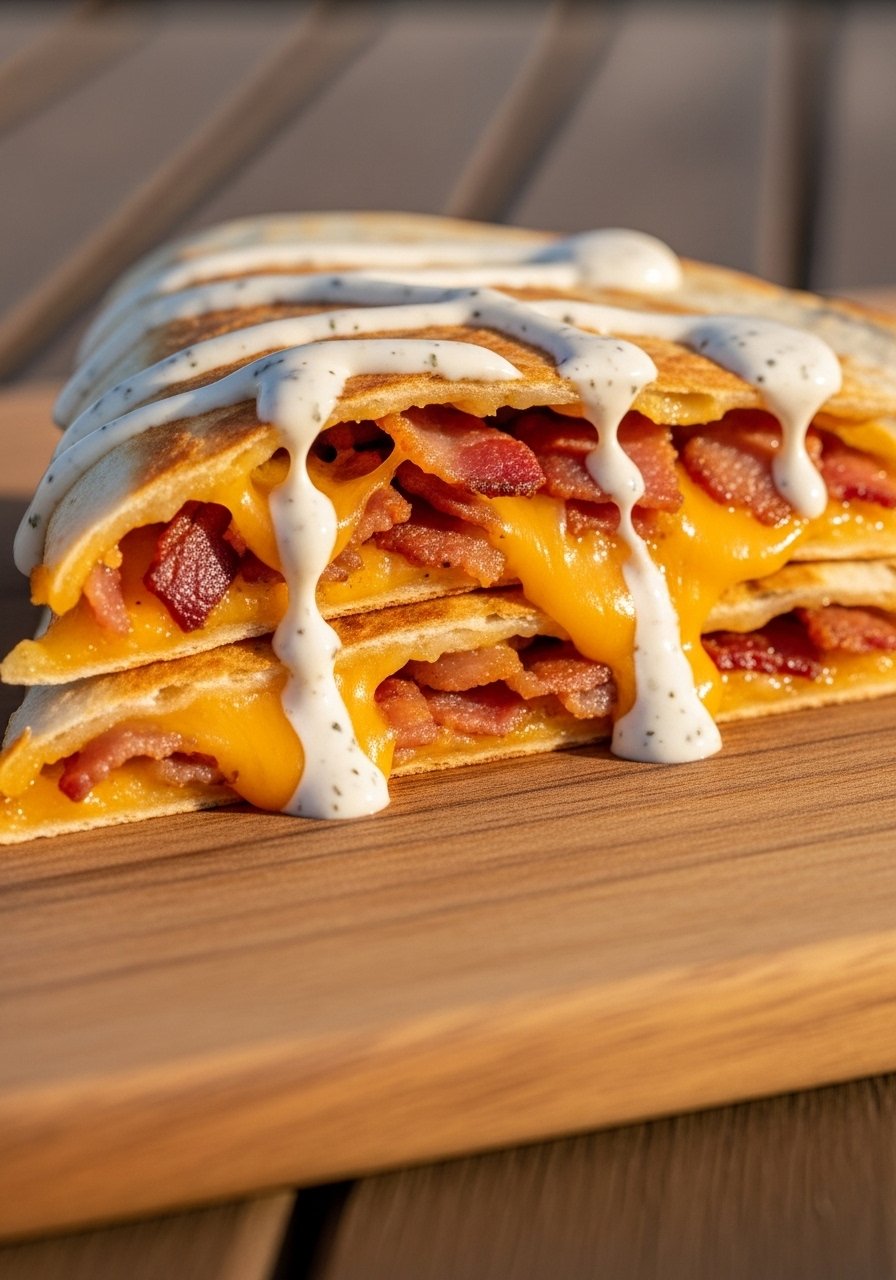 15. Creamy Ranch Chicken Quesadilla with Bacon
