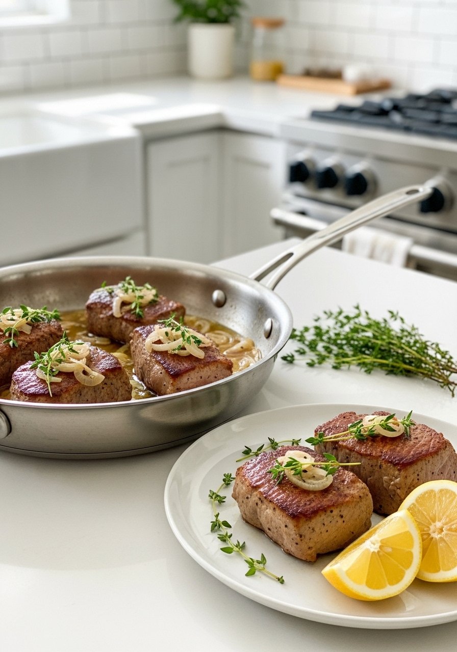 3. Heat skillet over medium-high and sear tenderloins 3–4 minutes per side.