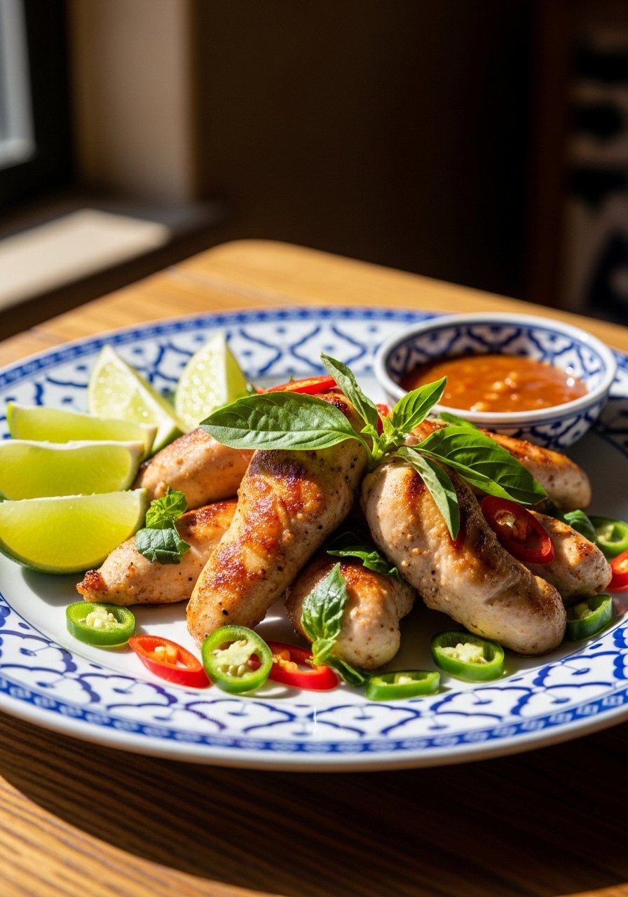 Fresh Thai basil, lime, and a touch of fish sauce make this bright, herbaceous marinade. It’s fragrant and slightly spicy—great for quick stir-fries or grilled skewers.