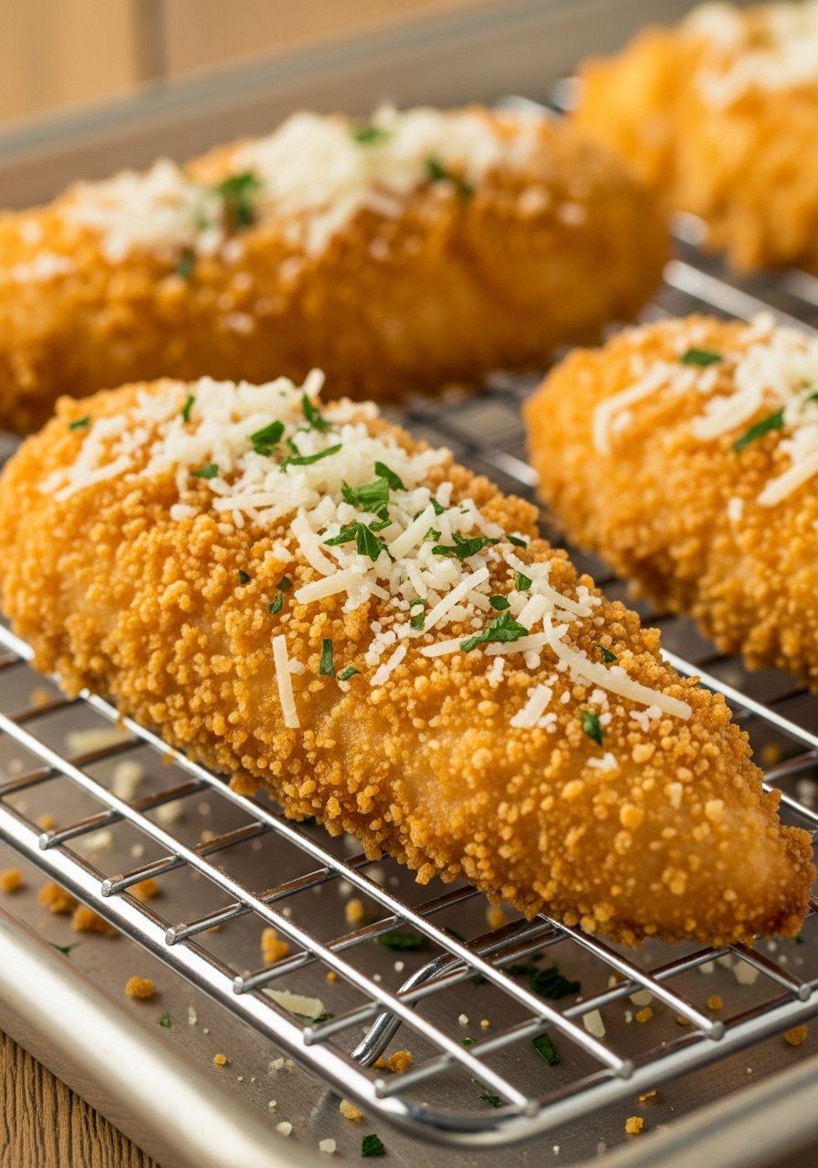 Slice on a platter and serve with honey mustard or BBQ sauce. Add a side salad and fries for a classic combo. Store cooled leftovers in glass meal prep containers for up to 4 days; reheat in a toaster oven to keep crispness.