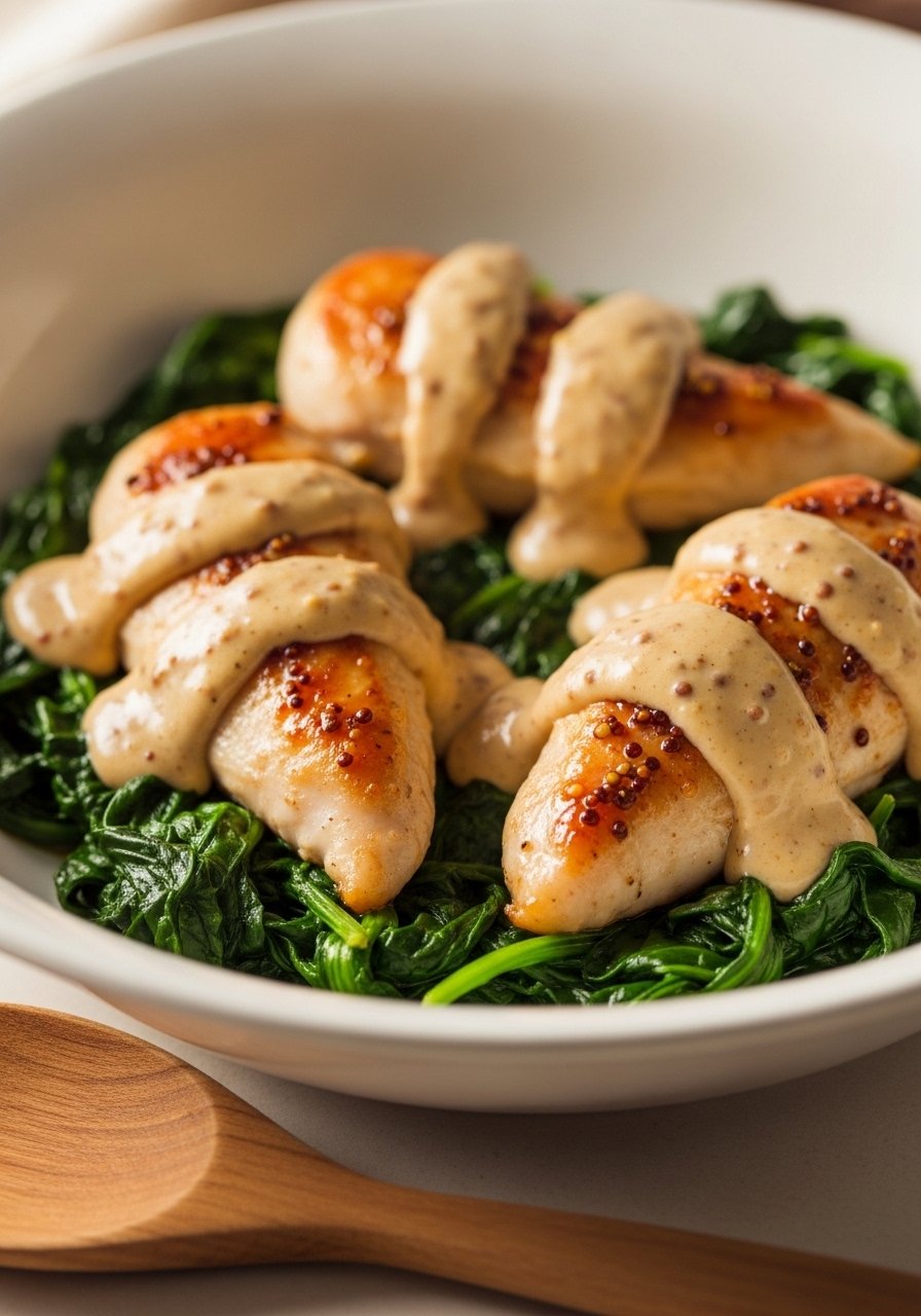 4. Stir in cream and Dijon, simmer until slightly thickened 2–3 minutes.