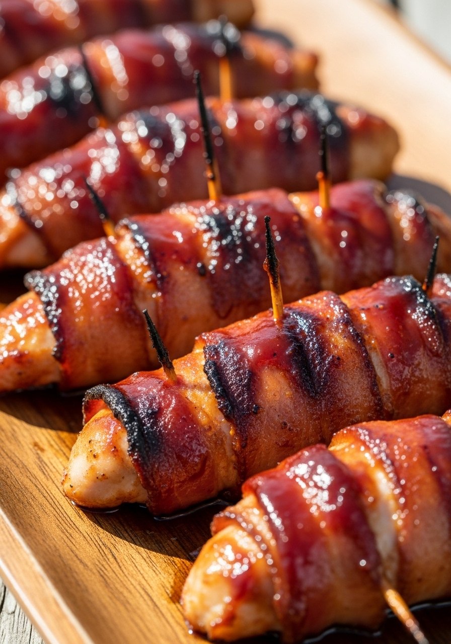4. Bake 15–18 minutes or grill 10–12 minutes, turning halfway, until bacon is crisp and chicken is 165°F.