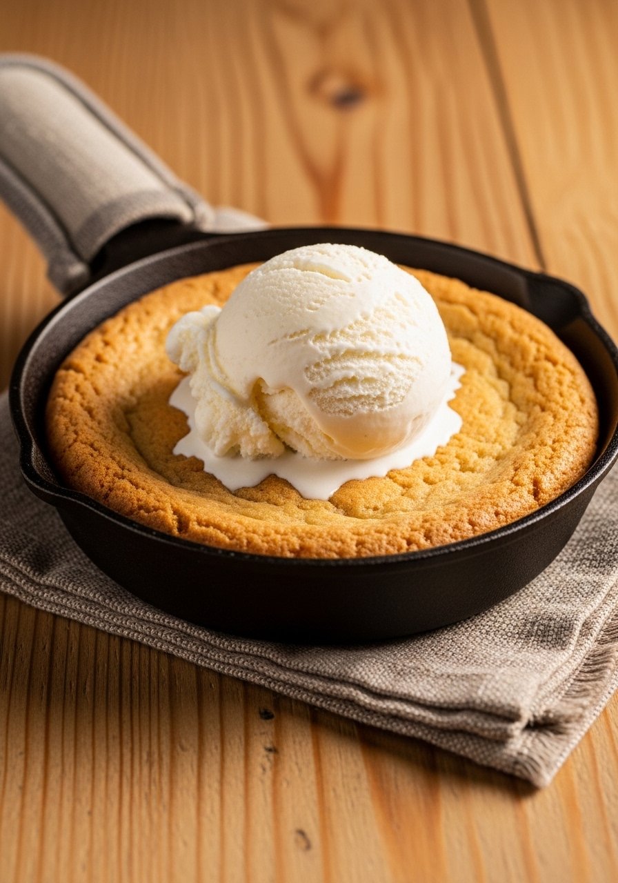This giant, gooey skillet cookie is warm, shareable, and perfect for dessert nights. The edges crisp while the center stays molten—pull out a spoon and dig in. Ideal for date nights or family-style serving.