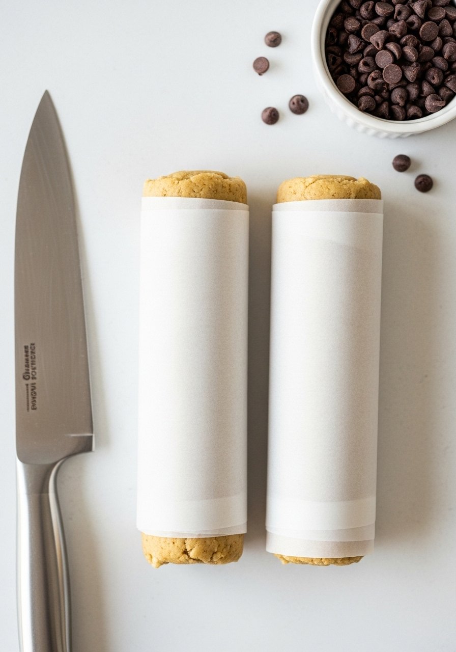 - Shape dough into two logs, wrap in parchment, and chill at least 24 hours.