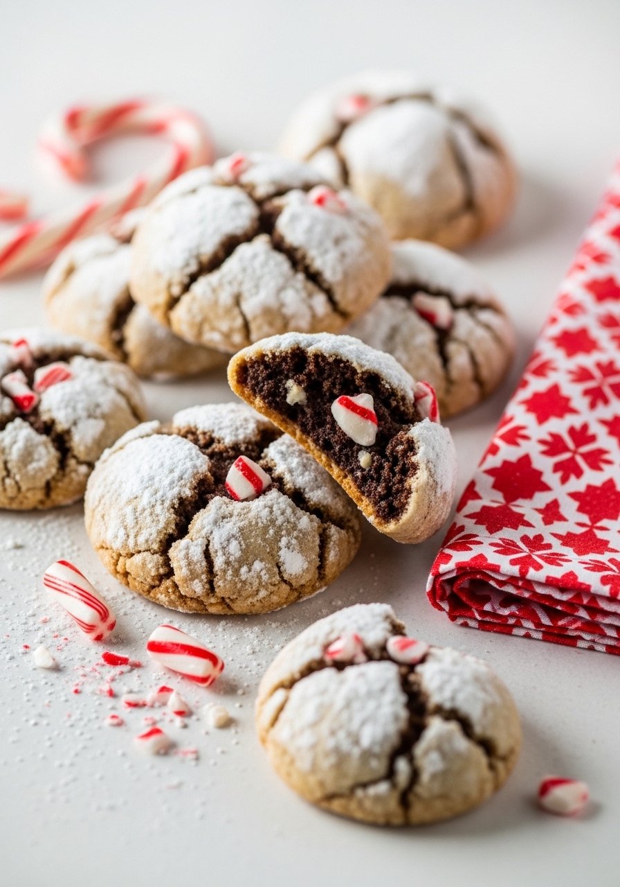 These chocolatey crinkles deliver crackly powdered-sugar tops and a hint of peppermint—perfect for holiday cookie trays. The soft, fudgy interior comes from a slightly underbaked center and quality cocoa. Candy cane crunch adds seasonal flair.