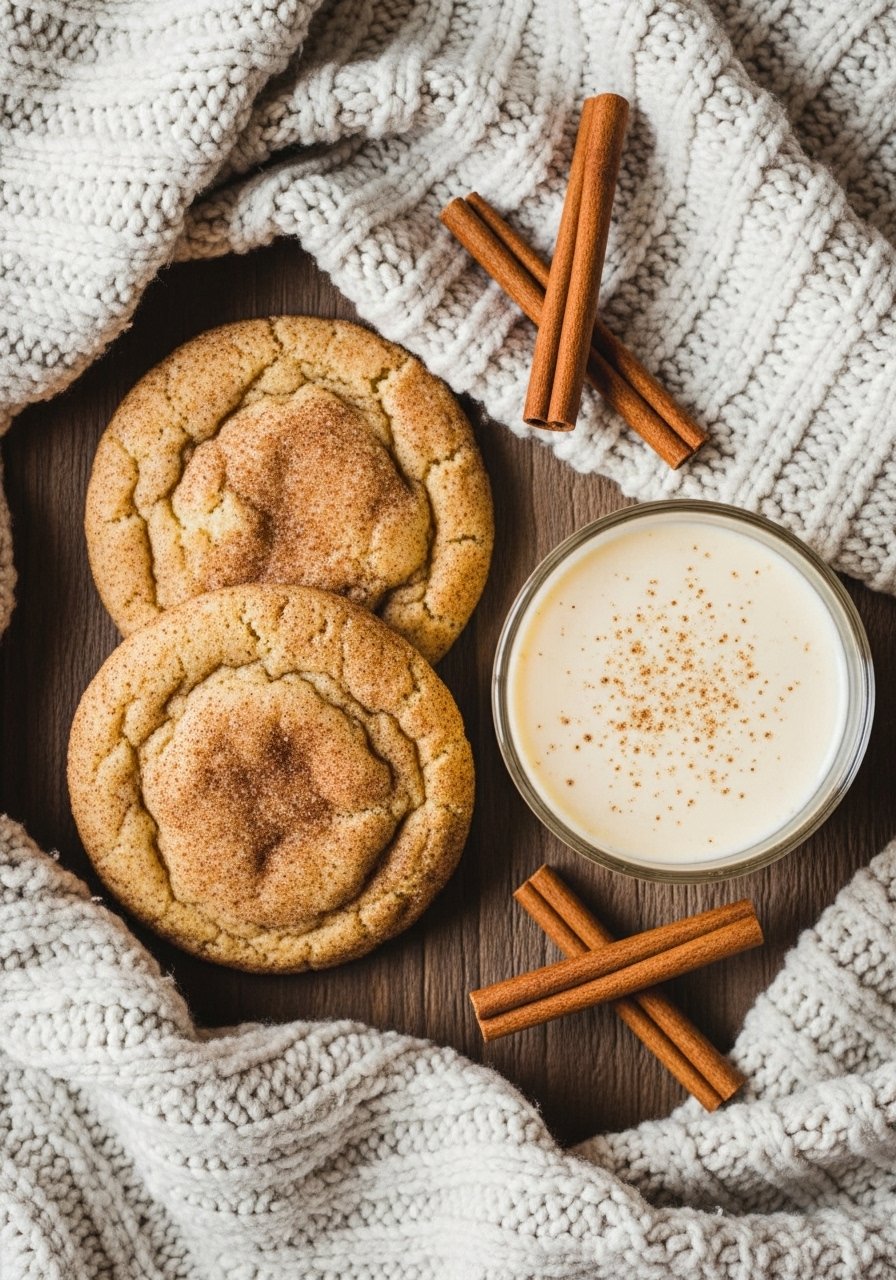 These snickerdoodles bring eggnog spices into a soft, tangy cookie—thanks to a touch of cream of tartar. A cinnamon-sugar crust and pillowy center make them festive and comforting.