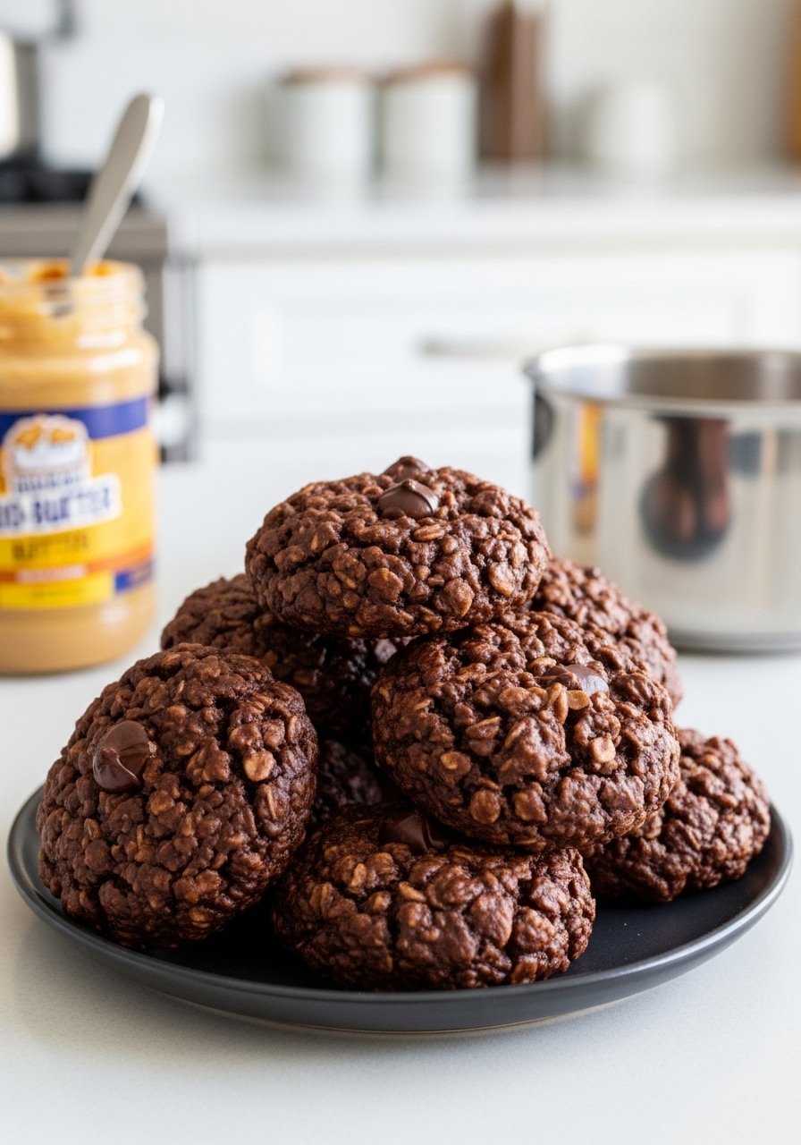 When the oven’s off-limits, these no-bake cocoa-oat cookies come to the rescue. They’re fudgy, chewy, and chocolaty—made on the stovetop and set on the counter. Great for hot days or very quick treats.