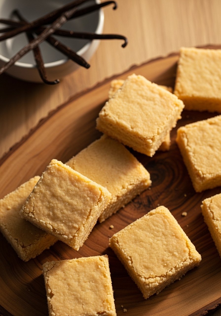 Shortbread bars cut into squares are easier than rolling cookies and have that classic buttery melt. They’re sturdy for packaging and great for dunking.
