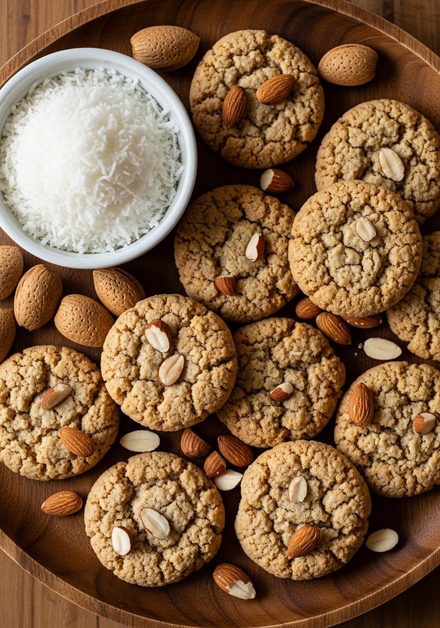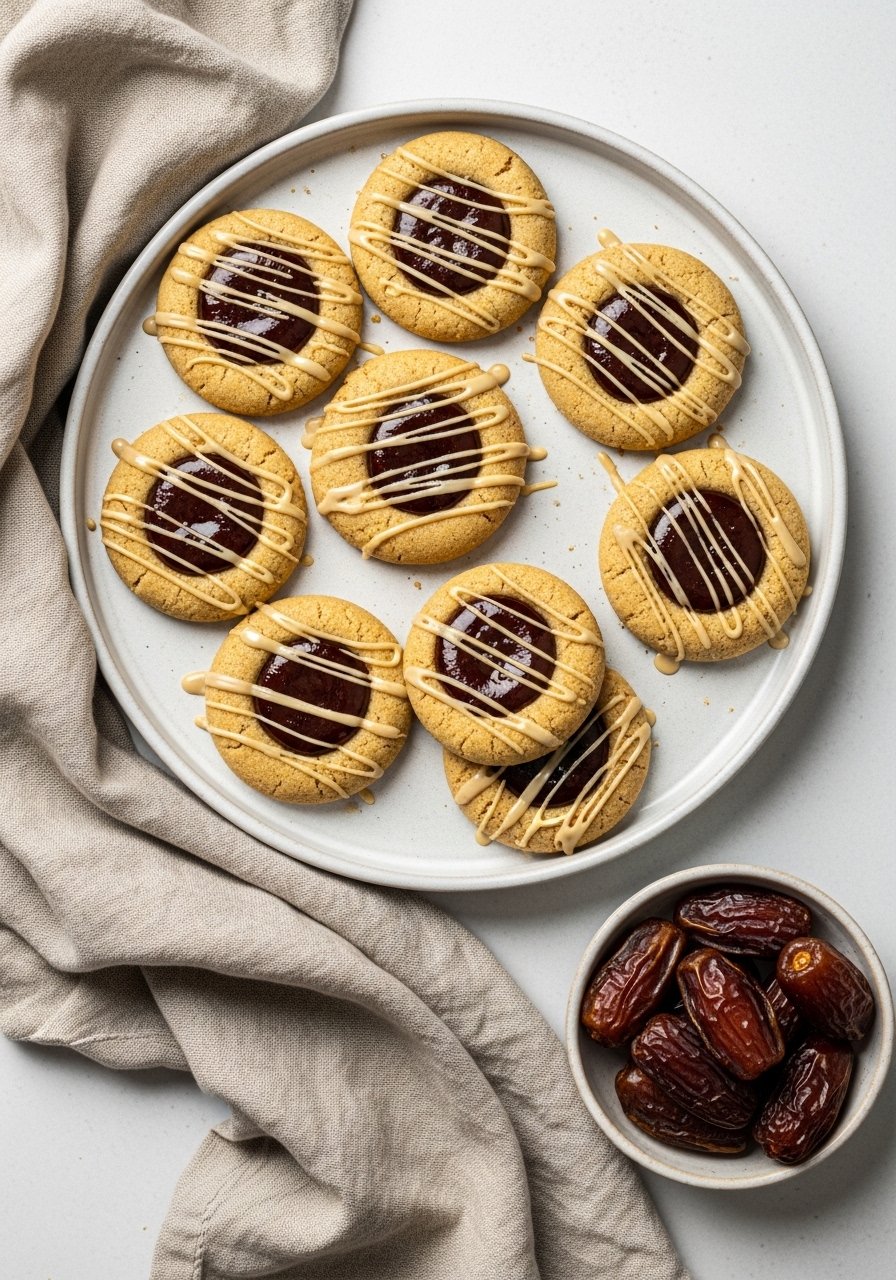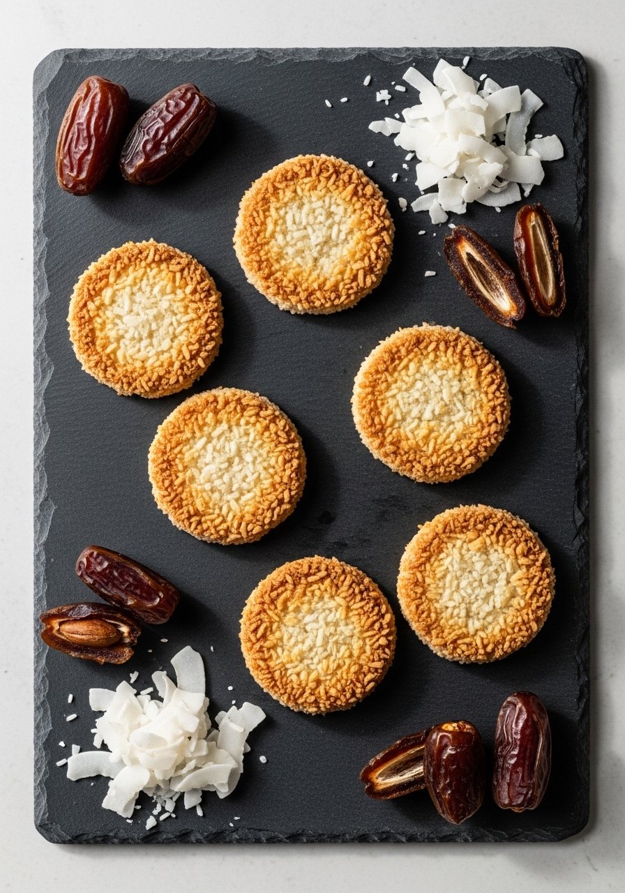 These soft thumbprint-style cookies use date paste for sweetness and shredded coconut for texture. They’re chewy, naturally sweet, and great with coffee or tea.