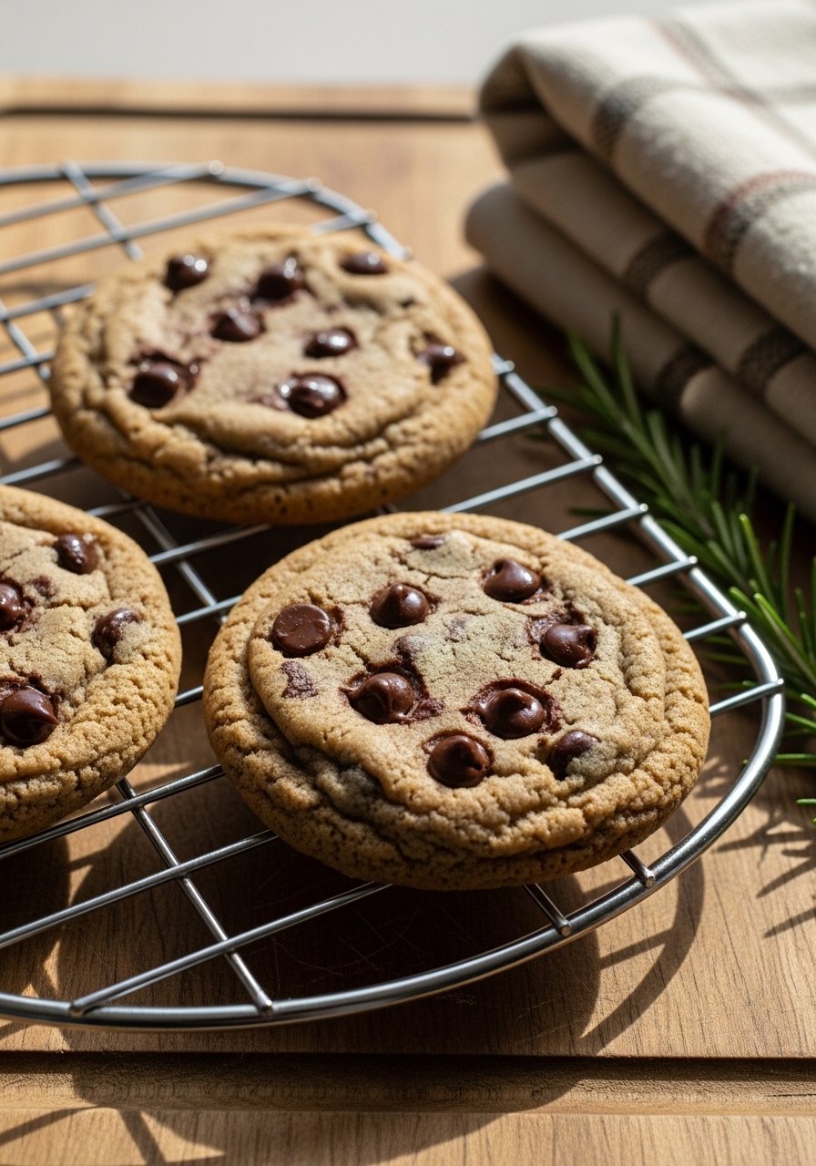 Tahini adds a savory, nutty depth that pairs beautifully with big chocolate chunks. These cookies are slightly chewy with a subtle sesame aroma.