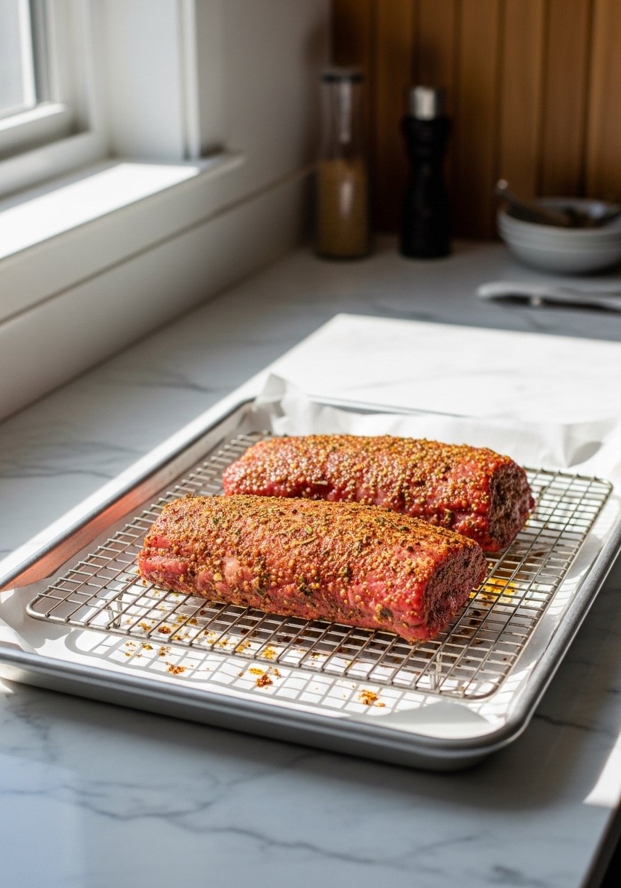 Trim excess fat and silver skin so the tenderloins cook evenly. Pat them dry with paper towels—wet meat steams and dries out. Measure salt carefully: for a quick brine, dissolve 1 tablespoon kosher salt per 2 cups water and submerge tenderloins for 15–30 minutes. This short brine firms texture and adds moisture without waiting hours.