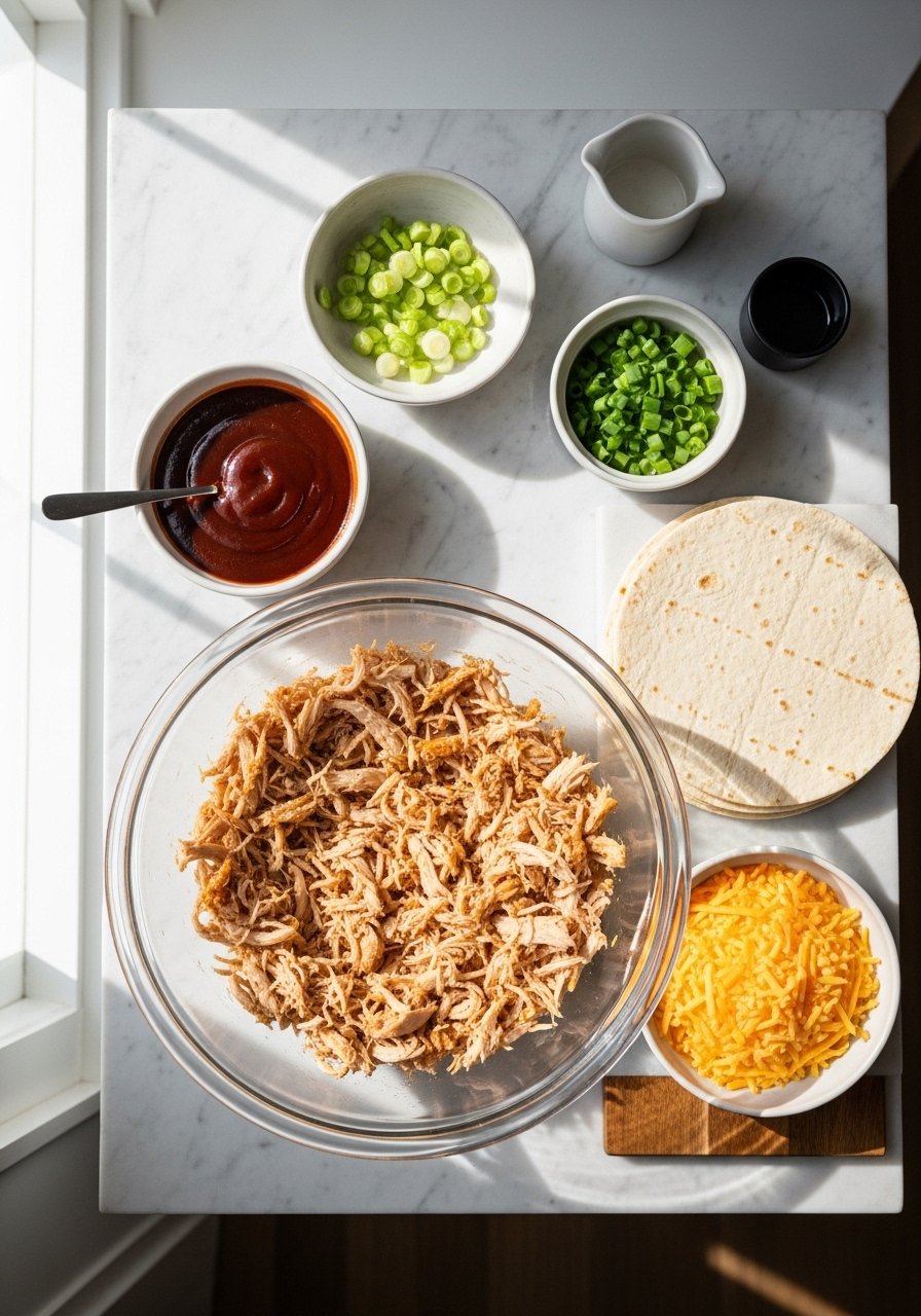 - Sauce: Toss chicken with 1/3–1/2 cup BBQ sauce—adjust to taste.