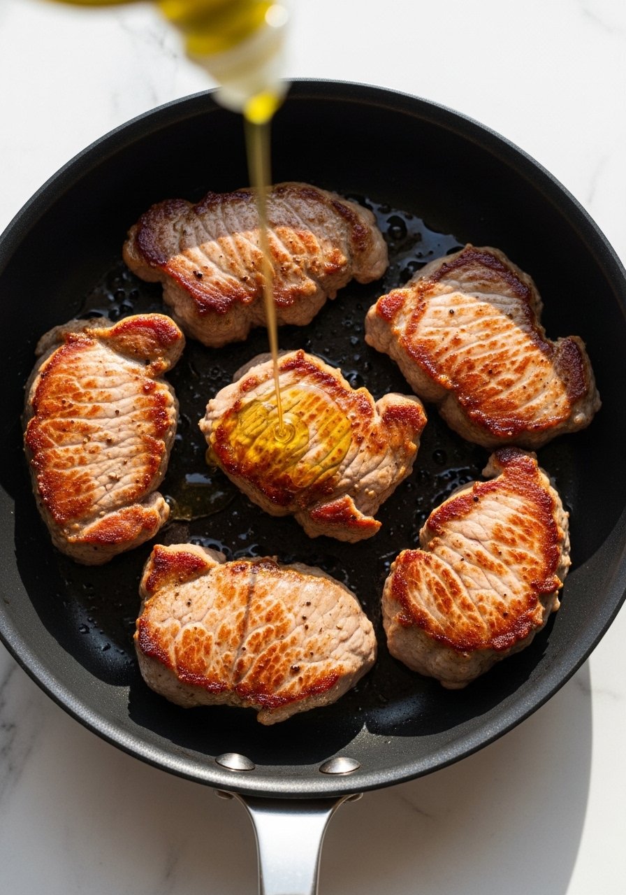 Heat your skillet over medium-high until it's shimmering. Add 1 tbsp oil, then place tenderloins spaced apart—don’t crowd the pan.