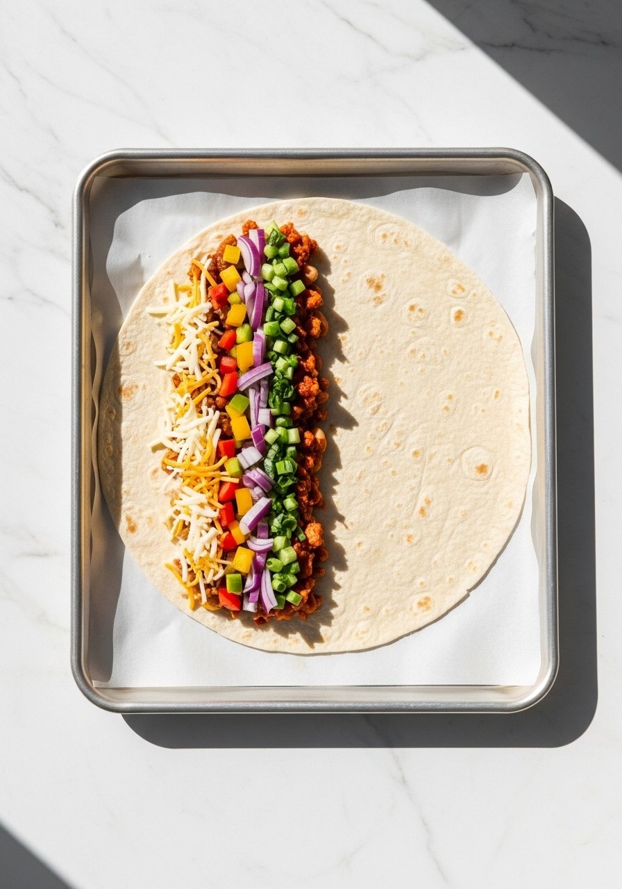 Prep first so assembly is fast. Chop fillings into bite-sized pieces and shred cheese finely—this melts faster and more evenly.
