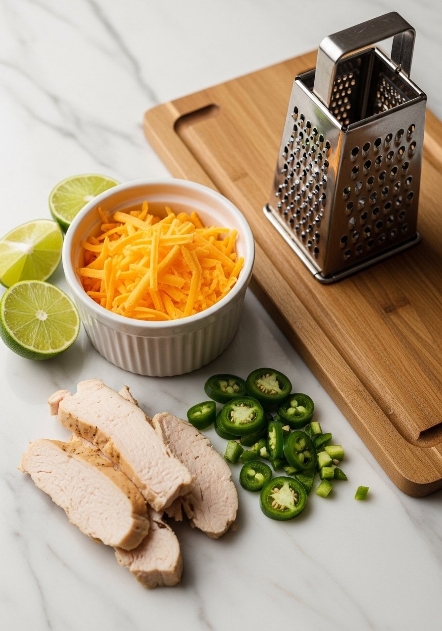 Prep is half the battle when learning how to make quesadillas at home. Gather: 6 large flour tortillas, 2 cups shredded cheese (mix mozzarella + sharp cheddar), and fillings like cooked chicken, beans, or sautéed peppers. Use about 1/2 cup filling per tortilla.