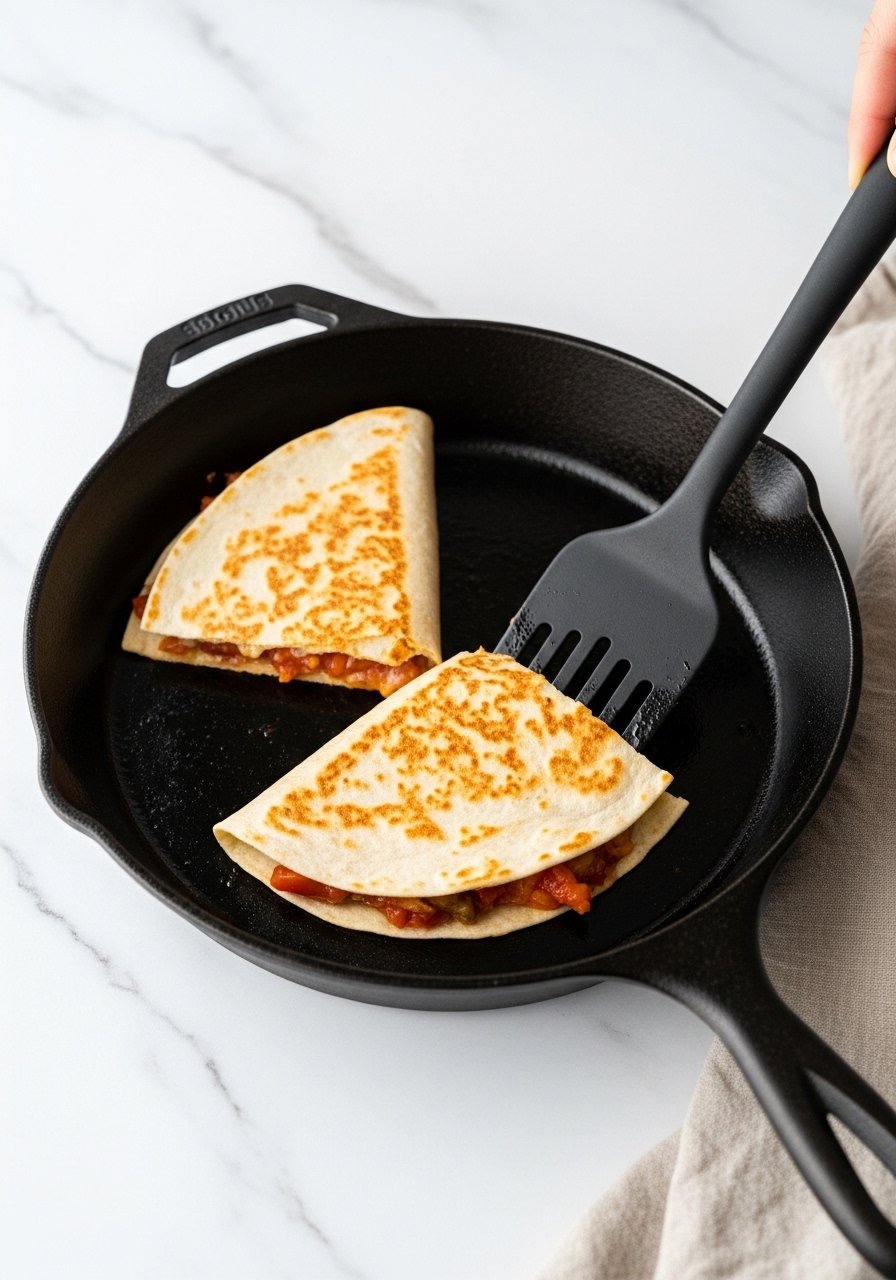 Heat control is what makes or breaks your quesadilla. Preheat your skillet over medium-high for 2–3 minutes until very hot. Lower to medium before cooking.