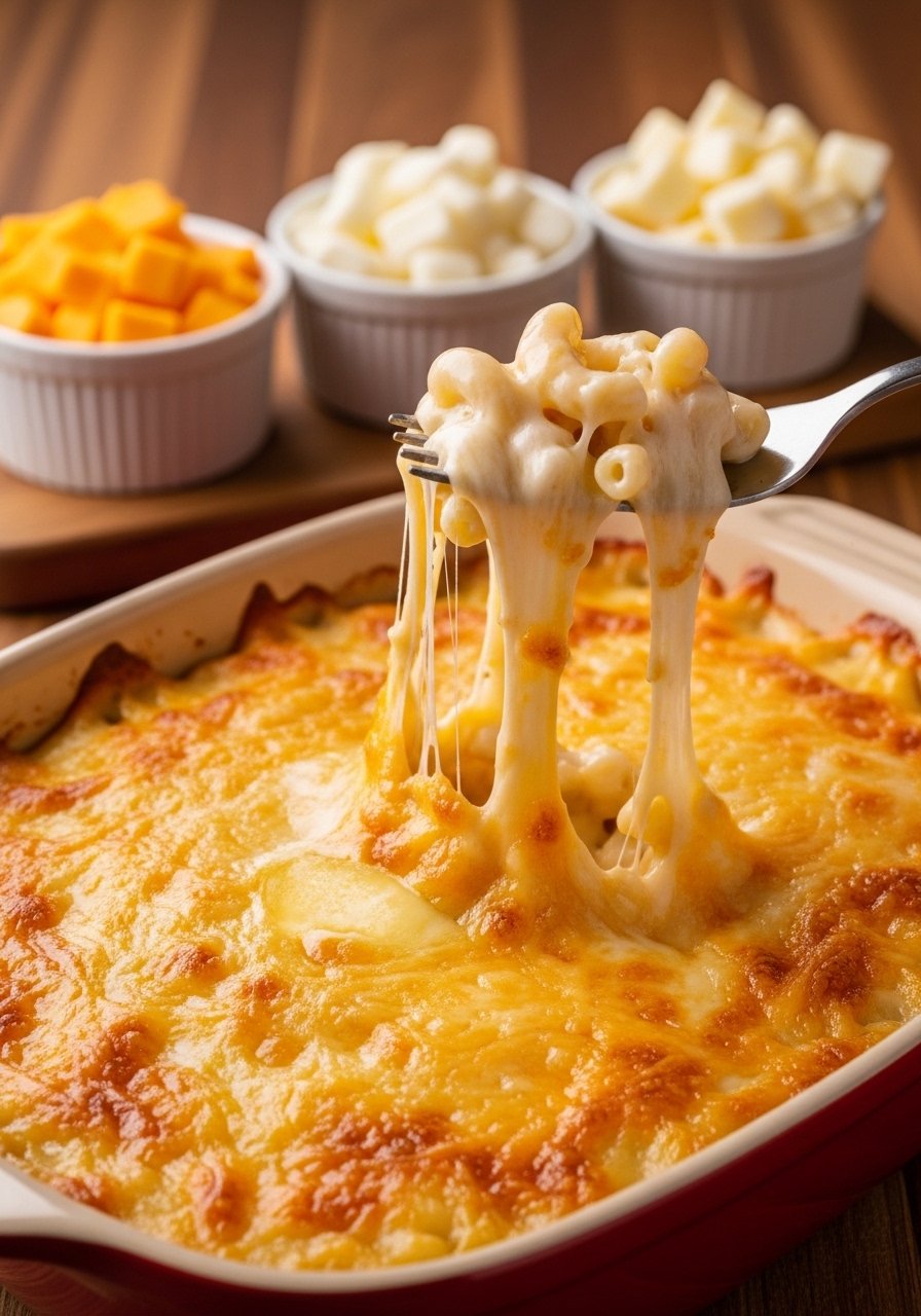 This is the go-to mild, cheesy casserole everyone remembers from childhood. It’s creamy, gently seasoned, and has that soft center with a slightly crisp top kids love. The texture is smooth with a light breadcrumb crunch, and the flavor leans on mild cheddar and a splash of milk so it's never sharp. Great for picky eaters, school lunches, or an easy family dinner.