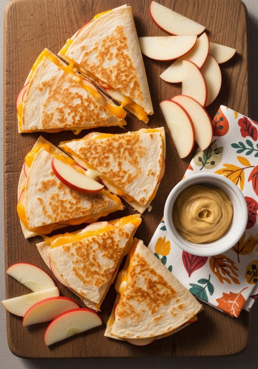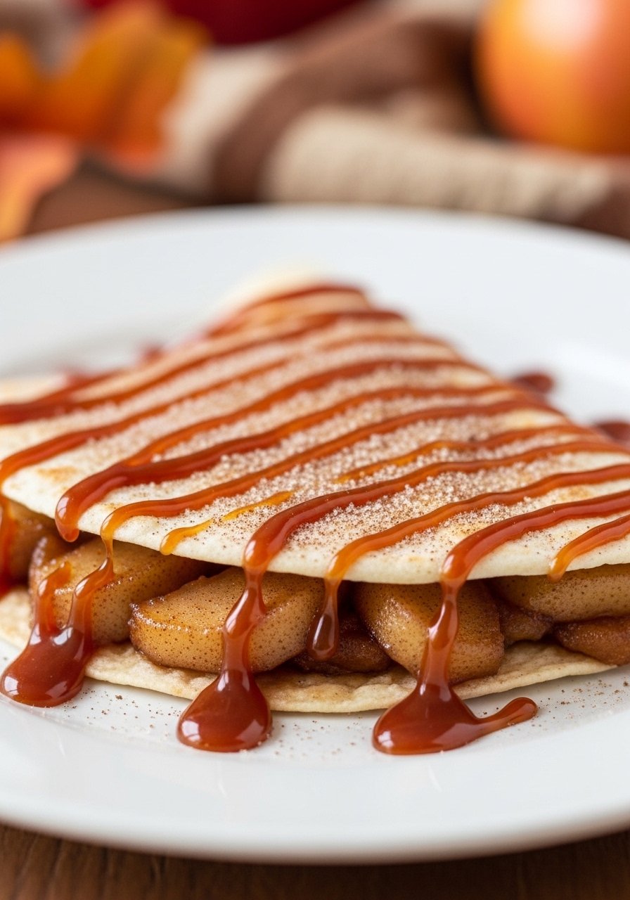 Caramelized apples with cinnamon and a little cream cheese make a dessert quesadilla that feels like a mini pie. Use a non-stick skillet to caramelize evenly.
