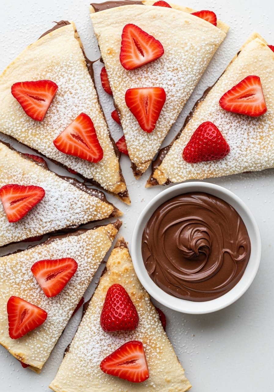 - Spread Nutella on half of each tortilla; add strawberries and a drop of vanilla.