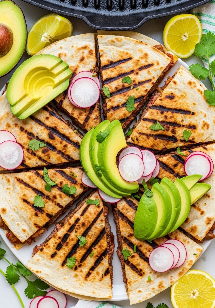 Marinated carne asada brings bright citrus and garlic to this steak quesadilla recipe variant. The lime-ancho marinade infuses deep flavor and the quick char adds smoky notes. Fans of bold Mexican flavors will adore this one. Marinate in a bowl or zip-top bag for easy prep.