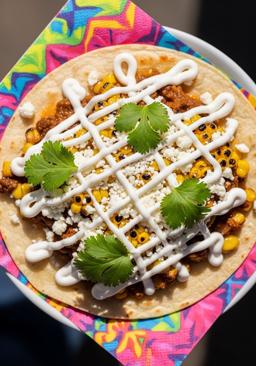 Inspired by Mexican street food, this quesadilla includes cotija, charred corn, and a squeeze of lime for a vibrant finish. It’s bold, bright, and packed with texture.