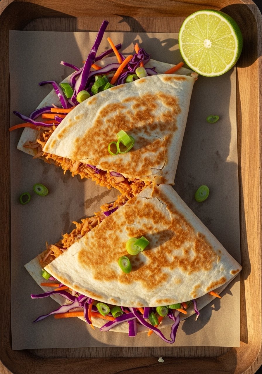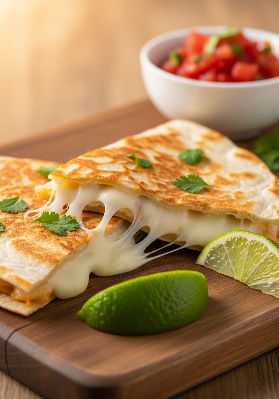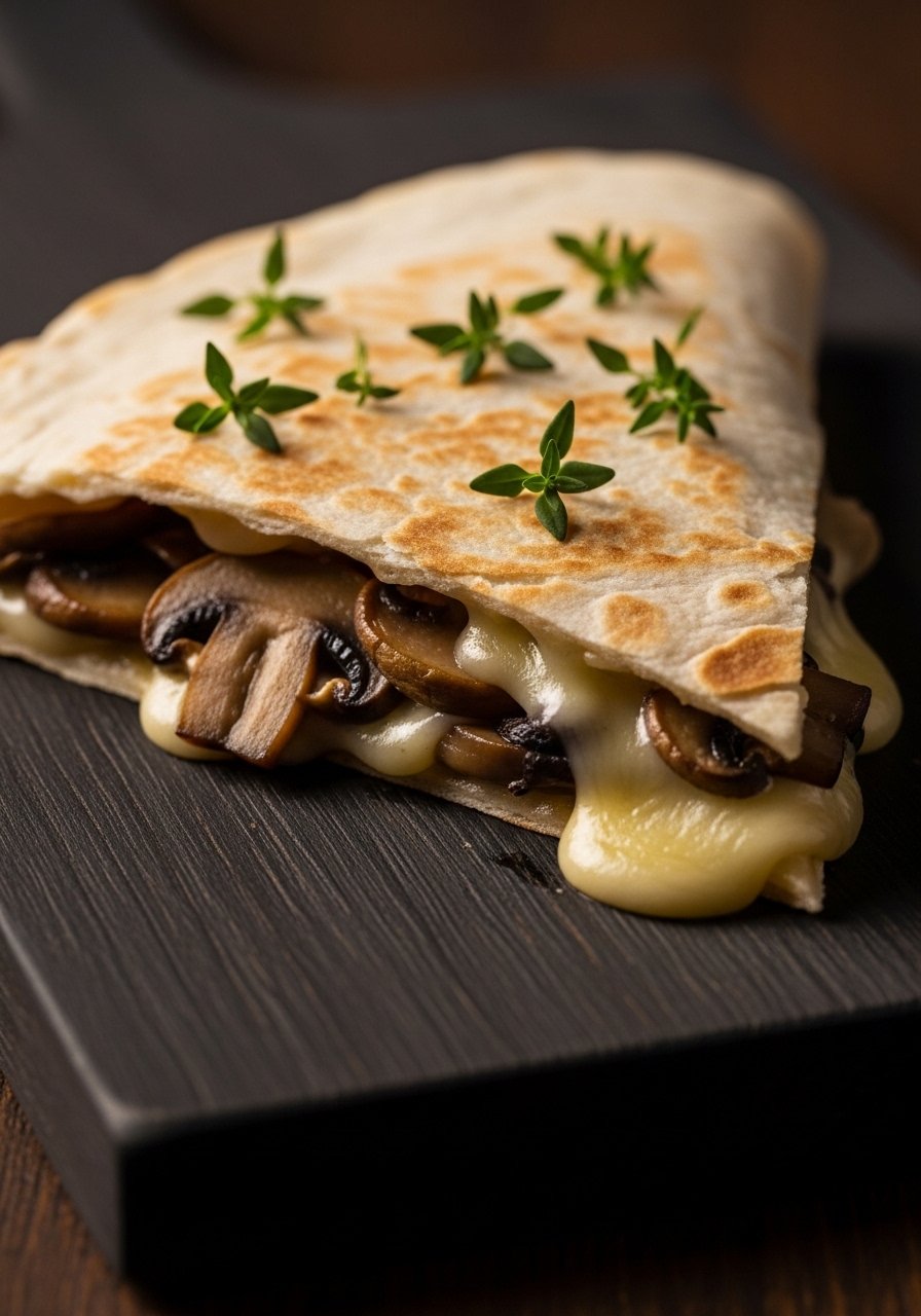 - Top with second tortilla and cook 3–4 minutes per side until golden and cheese melted.