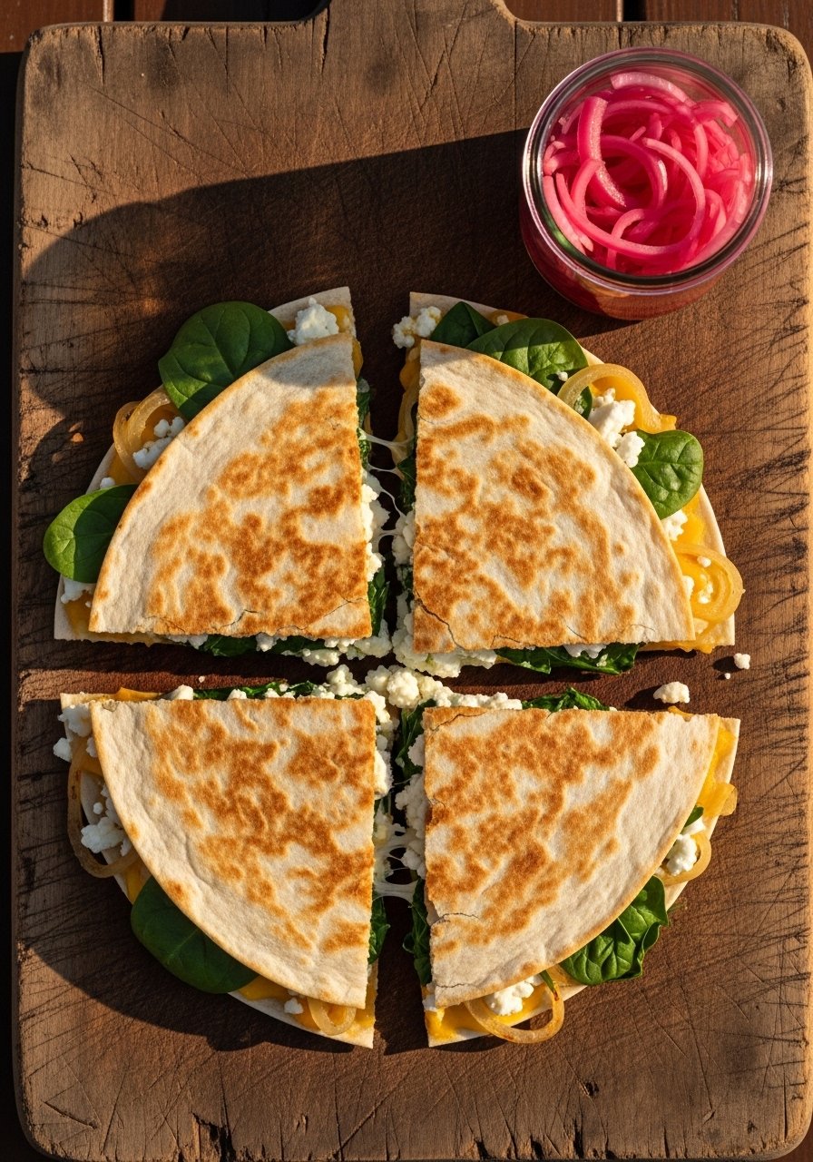 2. Spinach, Feta & Caramelized Onion Quesadilla