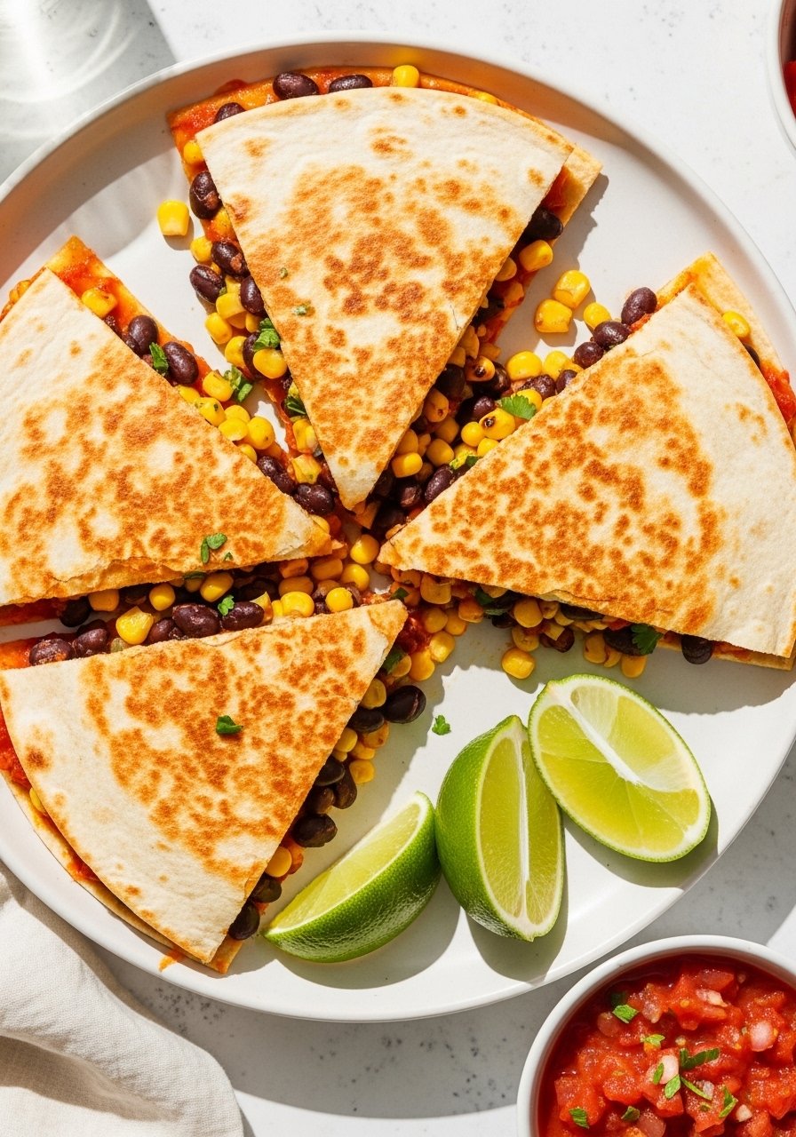 A crowd favorite: smoky black beans, sweet corn, and a squeeze of lime. This vegetarian quesadilla recipe is hearty enough for dinner but light enough for lunch. It’s crunchy, zesty, and full of Tex-Mex flavor.