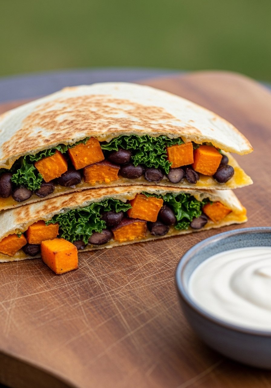 4. Sweet Potato, Black Bean & Kale Quesadilla (Vegan Option)