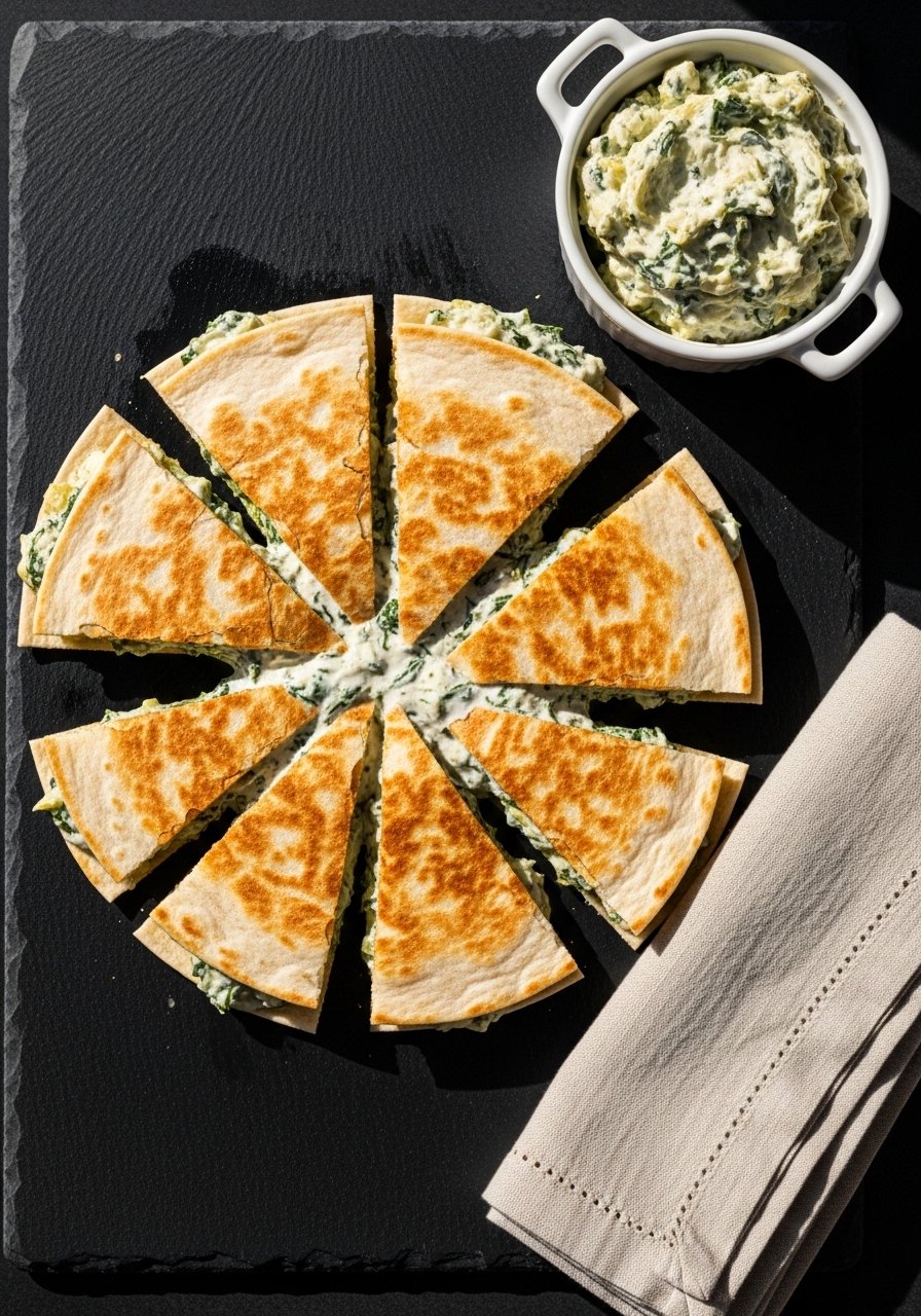 Bright spinach meets tangy feta and sweet caramelized onion. The contrast of silky spinach and crumbly cheese makes this a grown-up twist on vegetarian quesadilla recipes. It’s savory, slightly sweet, and fragrant.