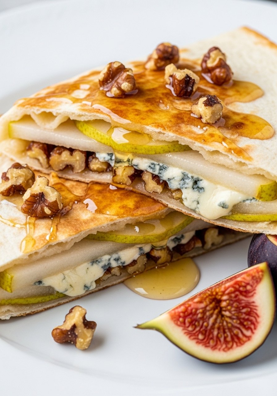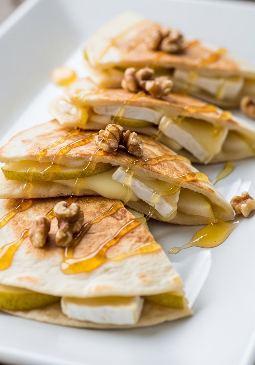 17. Pear, Brie & Walnut Quesadilla with Honey Drizzle