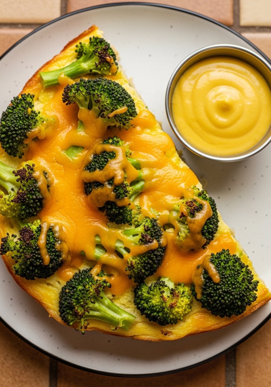- Place tortilla in skillet; layer broccoli and cheddar, then second tortilla.