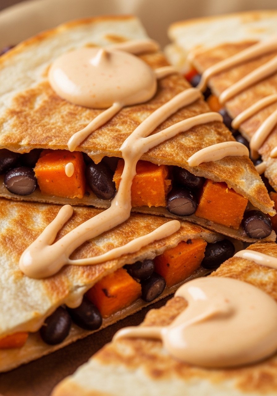 Smoky chipotle pairs with sweet potato for a complex, warming flavor. Add black beans for protein and texture—this vegetarian quesadilla recipe is cozy and smoky.