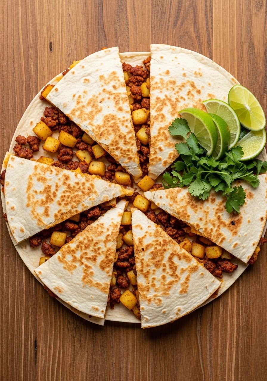 Spicy vegetarian chorizo and crispy potatoes deliver big flavor without meat—smoky, spicy, and filling. This vegetarian quesadilla recipe mimics classic chorizo combos.
